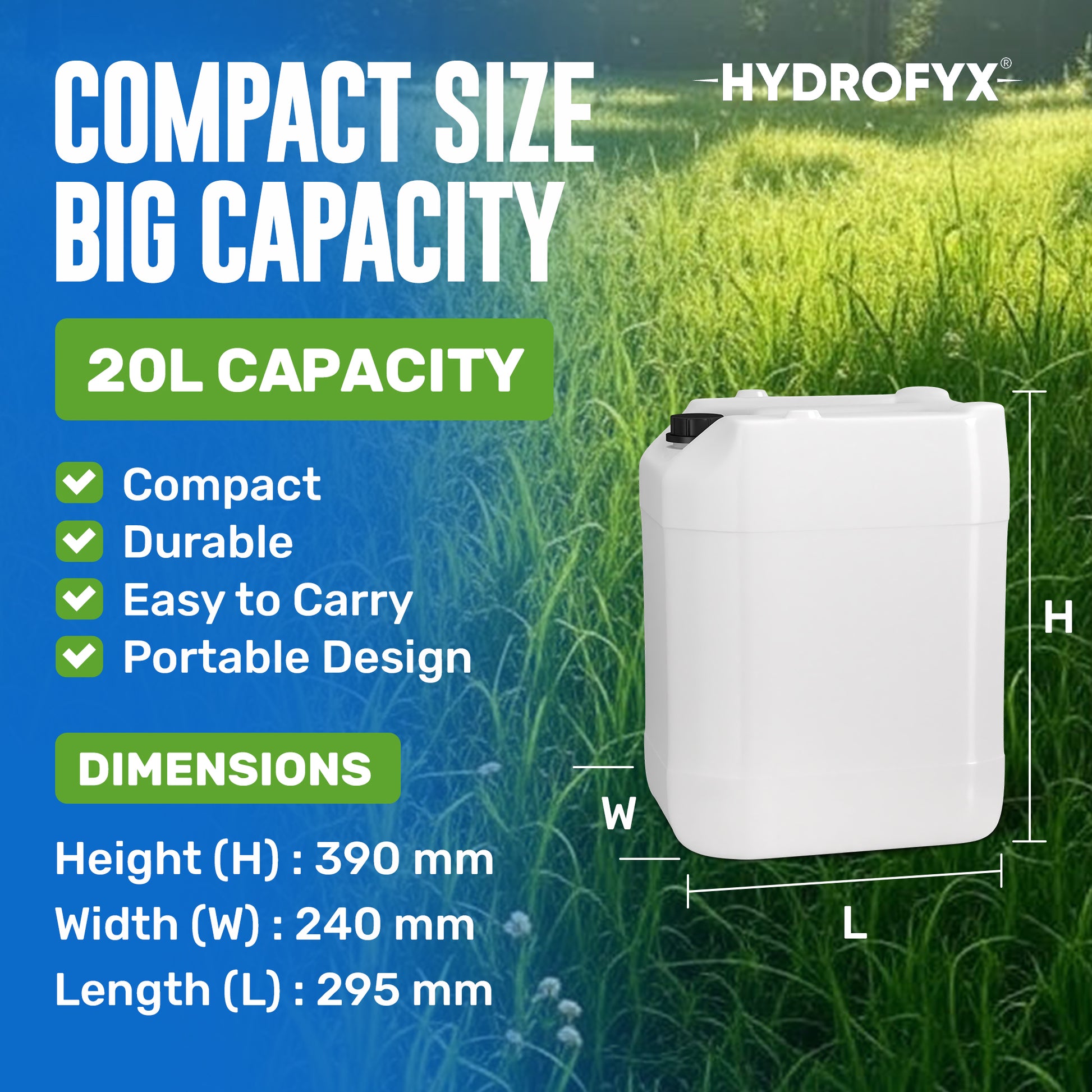 Our 20-Litre Food-Safe HDPE Container is designed for reliable, professional-grade liquid storage. Manufactured from high-quality food-grade HDPE plastic, this container is suitable for storing potable water, beverages, food ingredients, oils, cleaning chemicals, detergents, laboratory solutions, automotive fluids, agricultural products, and more.