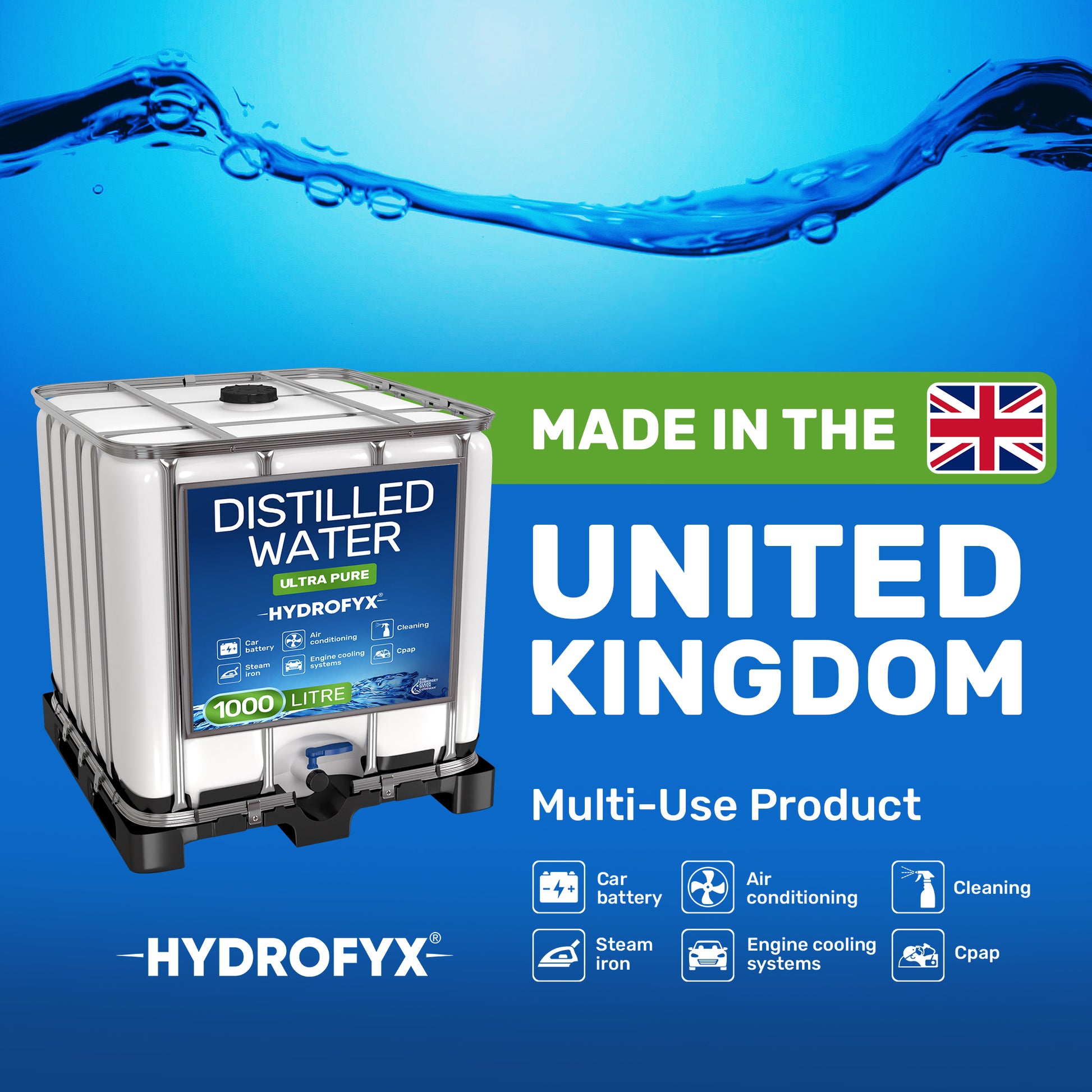 HYDROFYX 1000L Ultra Pure Distilled Water (IBC) – 0ppm TDS, Lab Tested & Certified – Ideal for CPAP, Aquariums, Automotive, Steam Iron & Cleaning