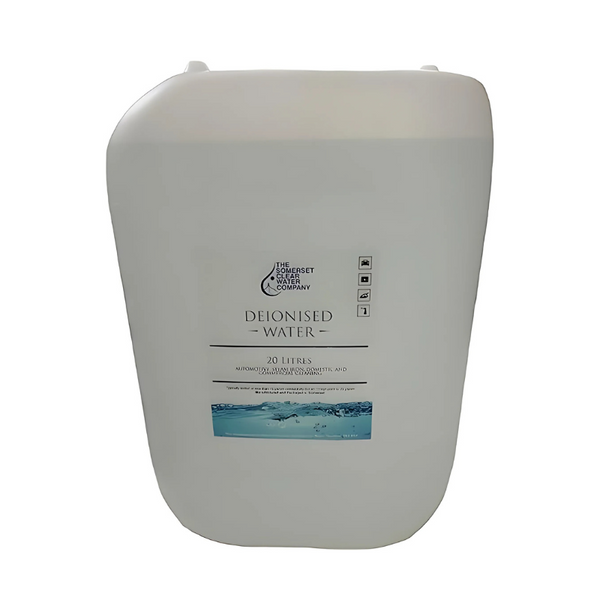 - De-Ionised Water 5-Litre 4-Pack (20L): High Purity De-Ionised Water typically tested at 10 μs/cm conductivity but an accept point of 20 μs/cm.